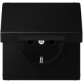 Розетка с/з с крышкой безвинт. зажим LS 990 (матовый черный)