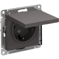 Розетка AtlasDesign с/з со шторками с крышкой, 16А, IP20 (базальт)