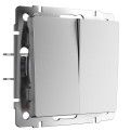 Переключатель 2-клавишный проходной с подсветкой (серебряный матовый)