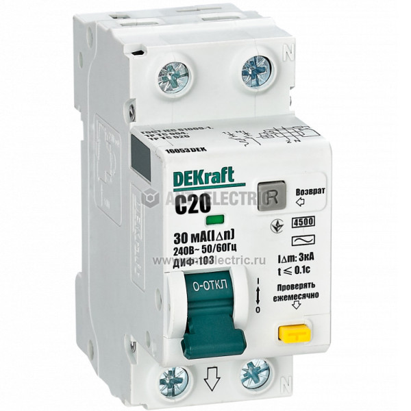 Автоматический выключатель дифференциального тока 1Р+N 20А 30мА тип AC C ДИФ-103 4.5кА
