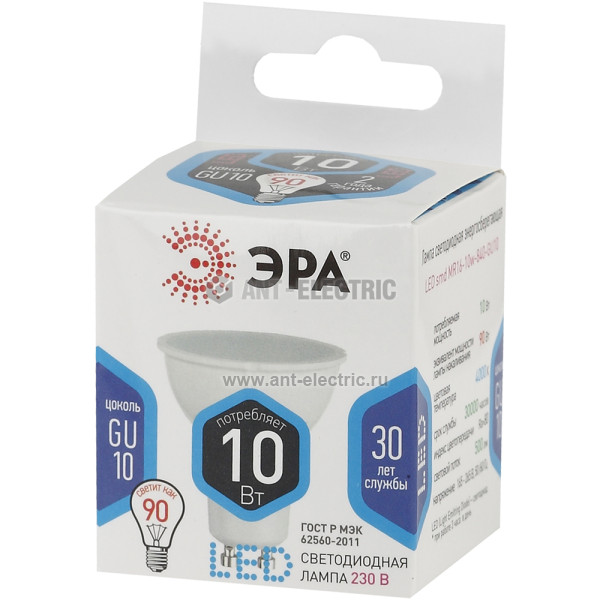 Лампа светодиодная LED 10 Вт 800Лм 4000К софит нейтральный GU10 170-265В LED MR16-10W-840-GU10 Standart