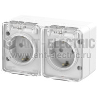 Розетка AtlasDesign Profi54 с/з, со шторками 16А 2-ая Наруж. IP54 (белая)  Артикул: