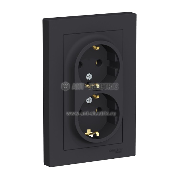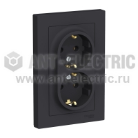 Розетка "евро" AtlasDesign электрическая двойная с заземлением в сборе с/з немецкий стандарт чёрная 16A