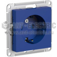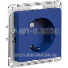 Розетка "евро" AtlasDesign электрическая с заземлением с/з немецкий стандарт синяя 16A с защитными шторками
