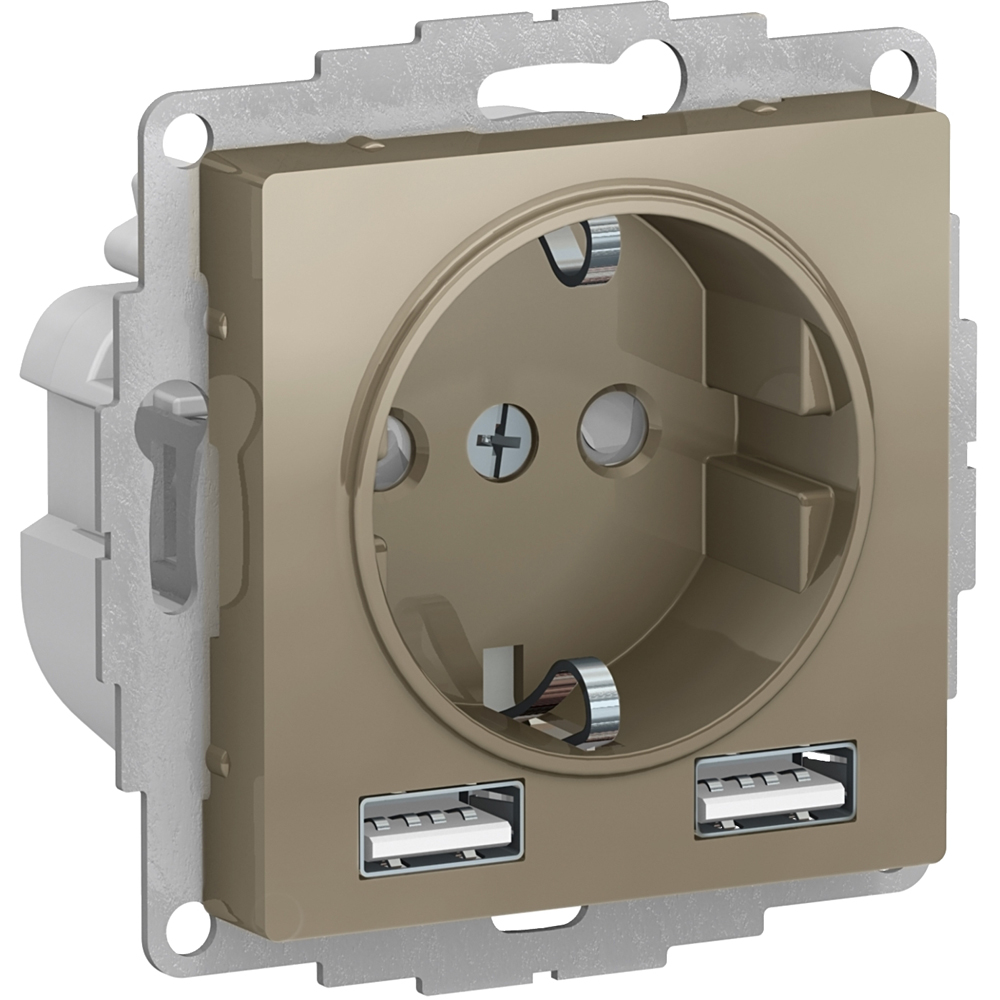 РОЗЕТКА ATLASDESIGN 16А c 2 USB A+A, 5В/2,4А, 2х5В/1,2А, механизм, ШАМПАНЬ (ATN000530)