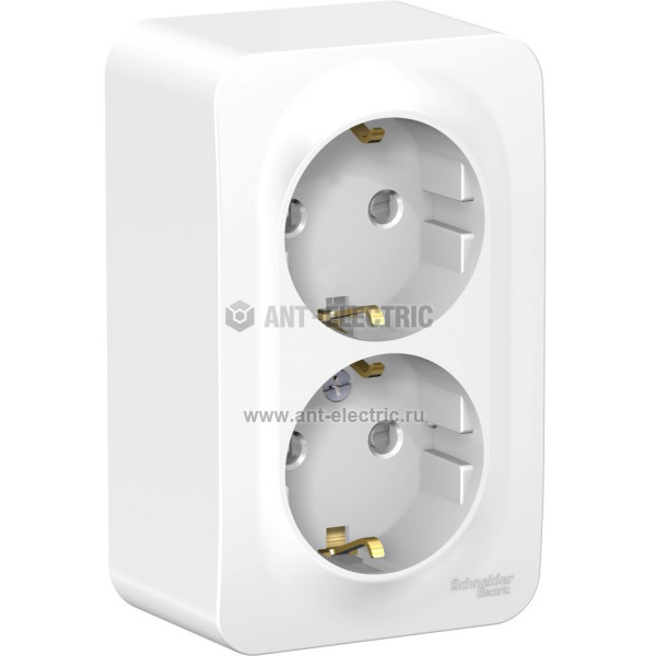 Розетка BLANCA наружная двойная, с заземлением, со шторками, с изолирующей пластиной, 16А, 250В, белый
