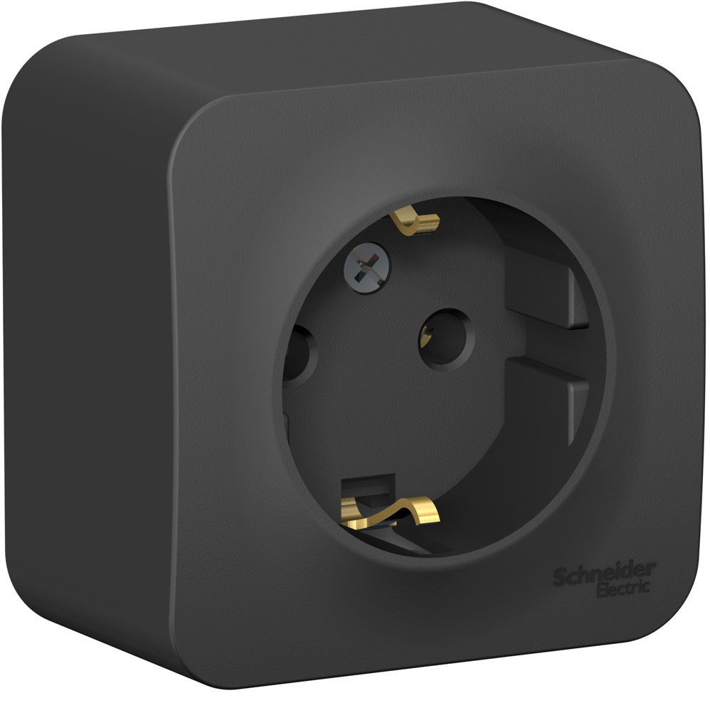 BLANCA Розетка наружная с заземлением без шторок с изолирующей пластиной, 16А, 250В, антрацит