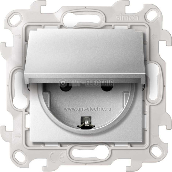 Simon 24 Алюминий Розетка IP44 с крышкой, заземлением и шторками Schuko 2Р+Е 16A 250В~ с системой Push&Go