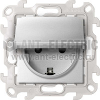 Розетка IP44 с крышкой, заземлением и шторками Schuko 2Р+Е 16A 250В~ с системой Push&Go цвета алюмин
