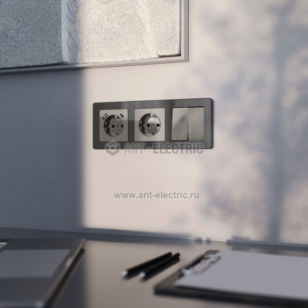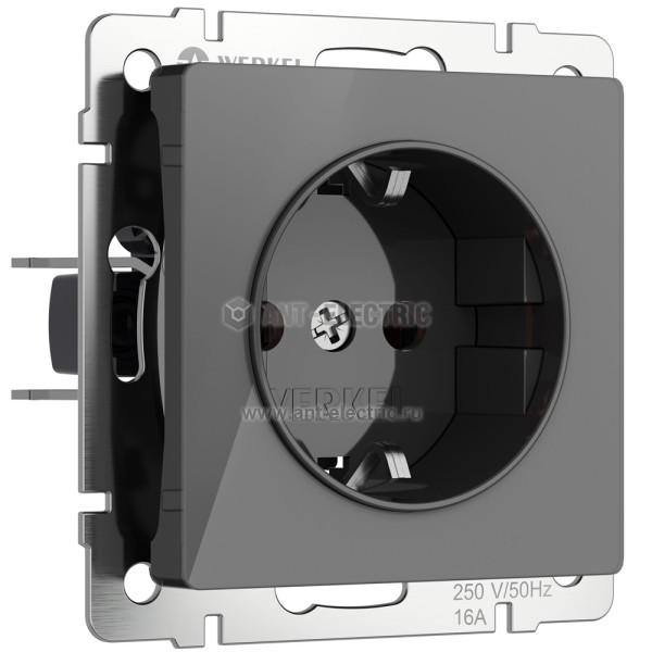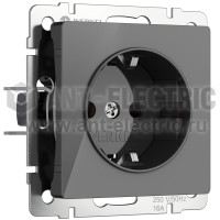 Розетка с заземлением и шторками (графит акрил) Артикул: