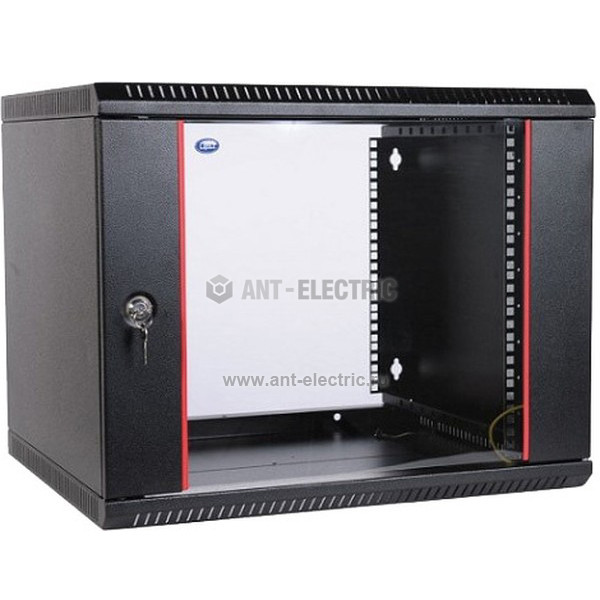 Шкаф телекоммуникационный настенный разборный 9U (600х650) дверь стекло черный