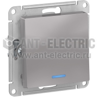 Выключатель AtlasDesign 1-клавишный с подсветкой сх.1, 10АХ (алюминий)