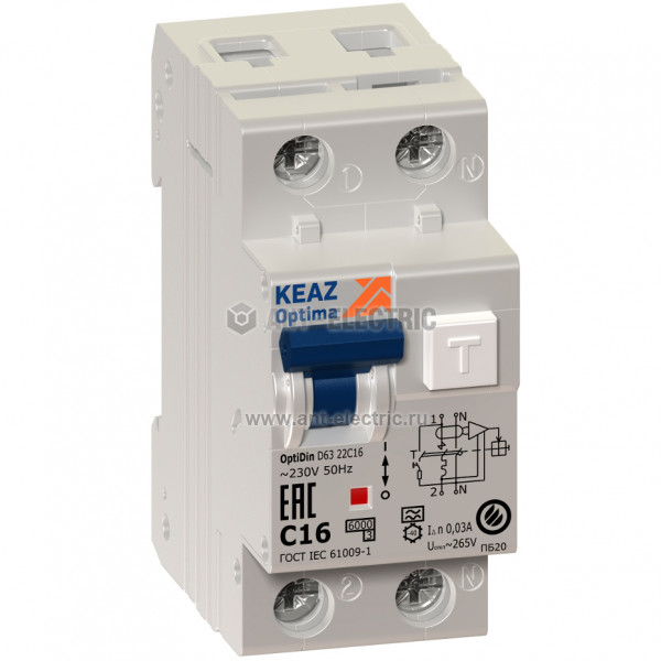 Выключатель автоматический дифференциальный АВДТ OptiDin D63-22C16-A-УХЛ4 с защитой от сверхтоков (103507)