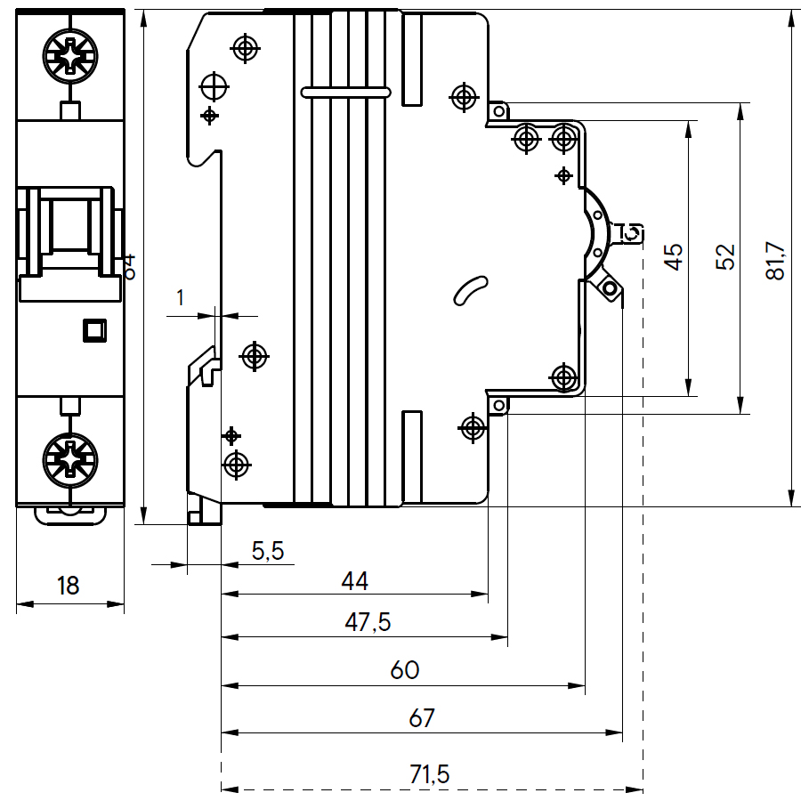 Автоматический выключатель модульный однополюсный (однофазный) 1 полюсный хар-ка B (характеристика, кривая B) на 1 А 1 A 6кА