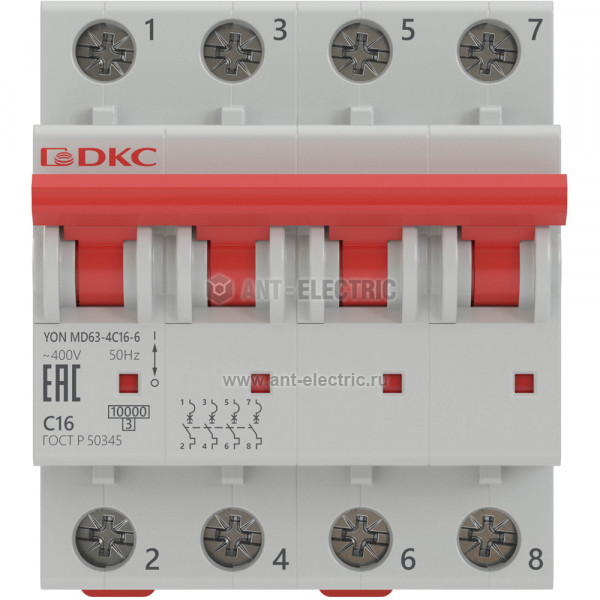 Авт. выкл. модульный YON MD63 4P 3А B 6kA