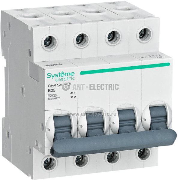 Выключатель автоматический четырехполюсный (АВ) B 25А 4P 6kA 400В City9 Set