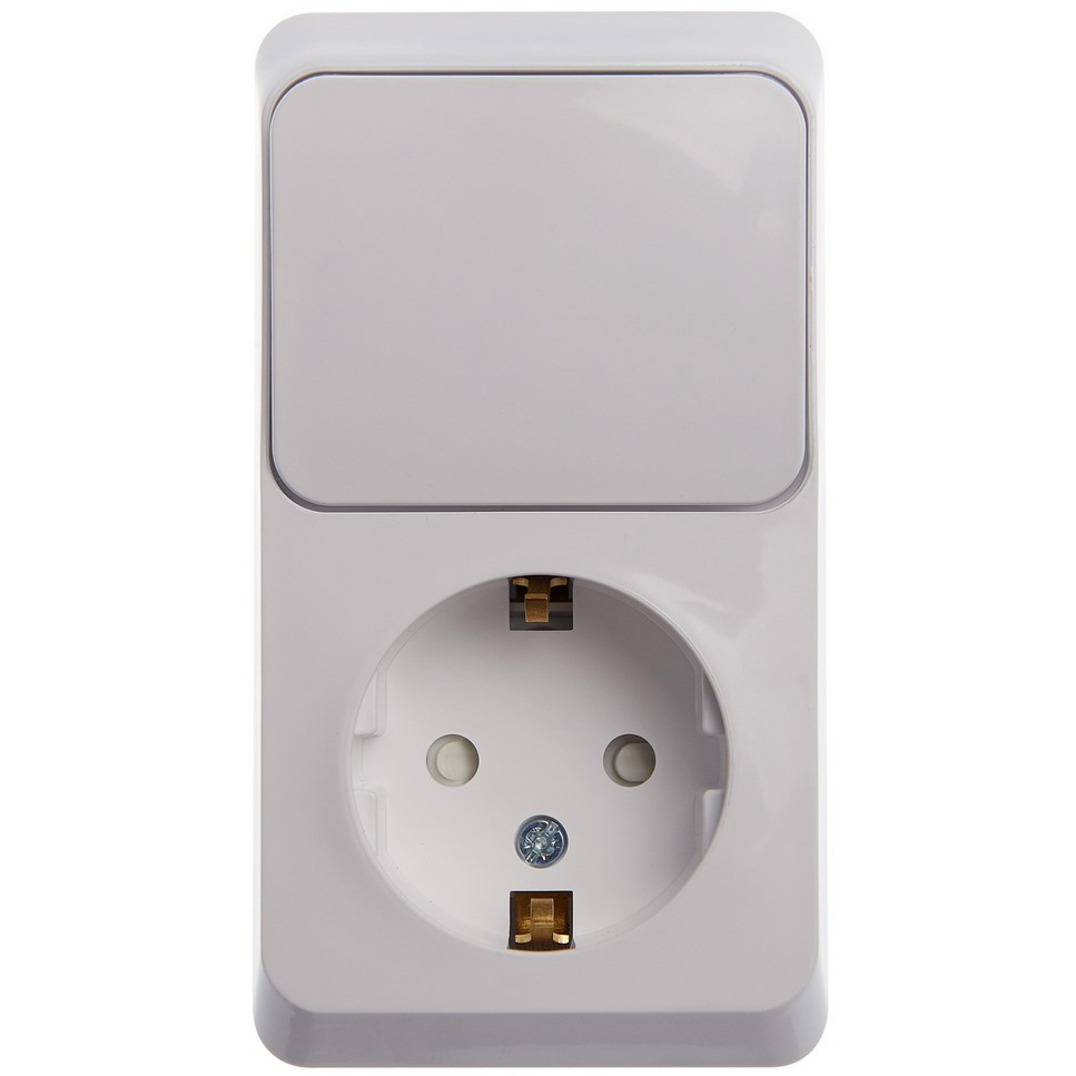 ЭТЮД блок открытой установки Розетка с зеземлением со шторками + Выключатель 1-клавиш., белый