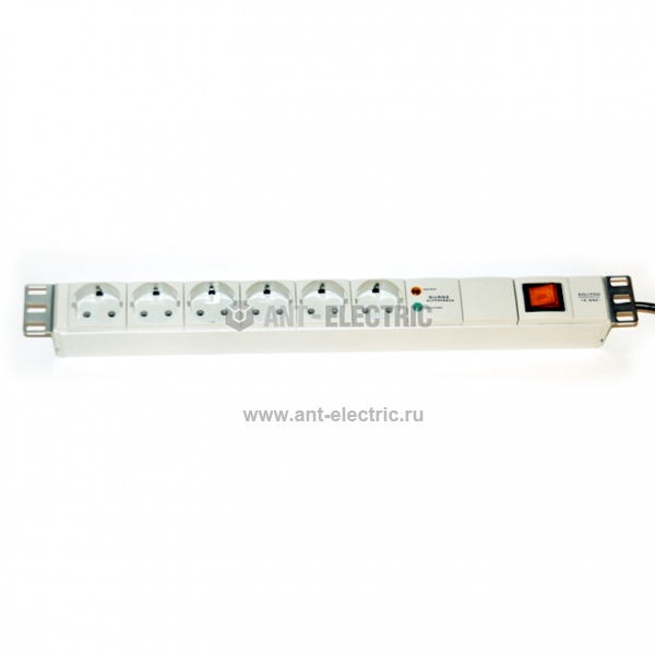 Блок питания 19', 6 розеток 250 В, 16 А, фильтр от бросков напряжения и в-ч наводок, выключатель, шнур питания 1.8 м