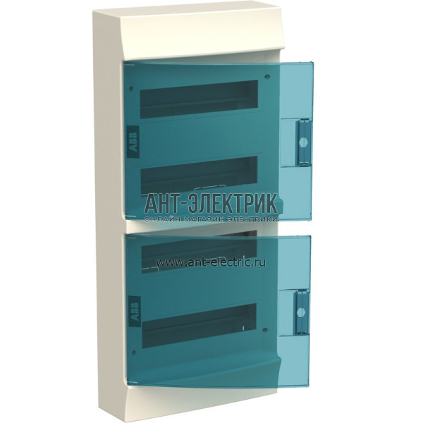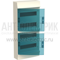 Пластиковый щиток с прозрачной дверцей (дверью) навесной настенный накладной, наружной установки на 48 модулей автомата (для автоматов) белый 48М с клеммниками