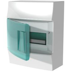 Пластиковый щиток с зеленой зелёной прозрачной дверцей (дверью) навесной настенный накладной, наружной установки на 8 модулей автомата (для автоматов) белый 8М без клеммников