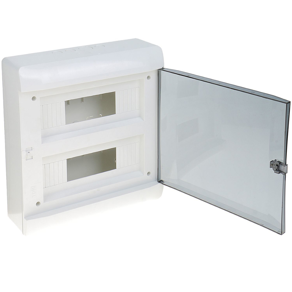 Щиток с дымчатой прозрачной дверцей (дверью) настенный накладной, наружной установки на 24 модулей (автомата) для автоматов белый 24М предназначен для установки модульных устройств защиты, контроля и учета, для защиты от поражения электрическим током, для защиты оборудования от вредных воздействий окружающей среды.