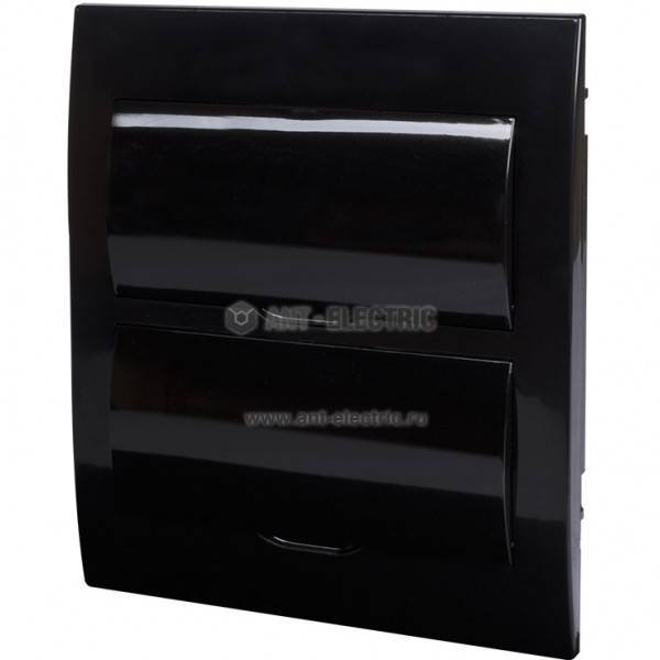 Пластиковый щиток с дымчатой прозрачной дверцей (дверью) встраиваемый в нишу, скрытой установки на 24 модуля (автомата) для автоматов чёрный 24М