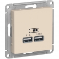 Розетка AtlasDesign SO + USB A+A, 5В/2,4А, 2х5В/1,2 А, (бежевый)