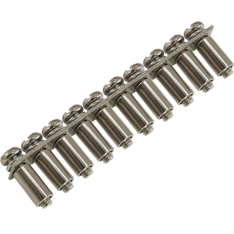 Зажимы представляют собой токопроводящую латунную сердцевину с возможность присоединения поперечных винтовых перемычек.