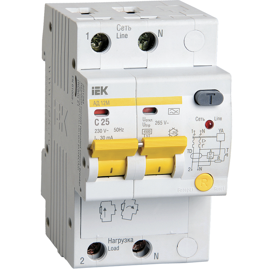 Выключатель автоматический дифференциальный АД-12М 2п С25 30мА (MAD12-2-025-C-030)