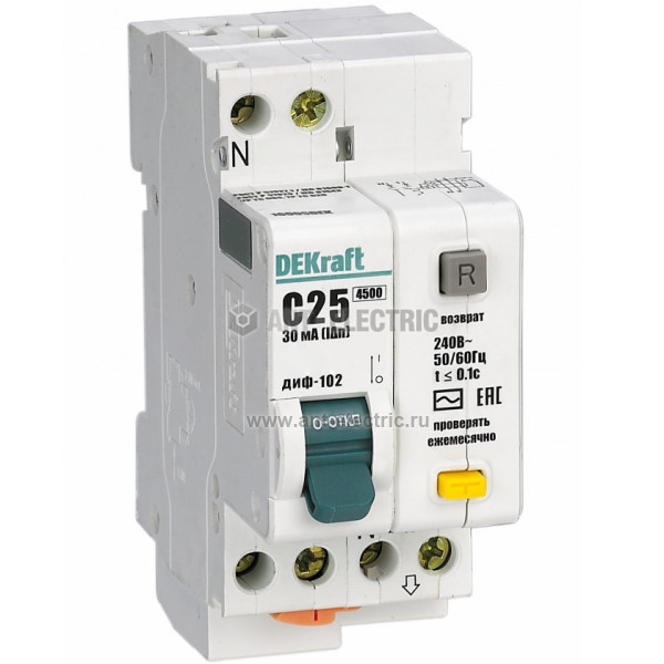 Диф. автомат АВДТ 1Р+N 6А 30мА тип AC х-ка С ДИФ-102 нов. 4,5кА