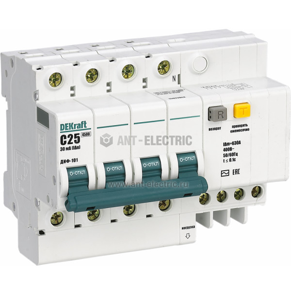 Диф. автомат АВДТ 4P 20А 30мА тип AC С 4.5кА ДИФ-101 (кратно 2 шт)