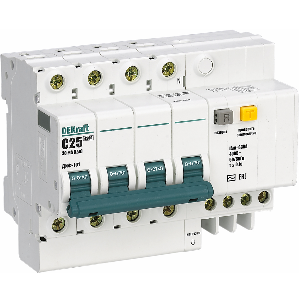 Выключатель автоматический дифференциальный 4п 20А 30мА тип AC С ДИФ-101 4.5кА