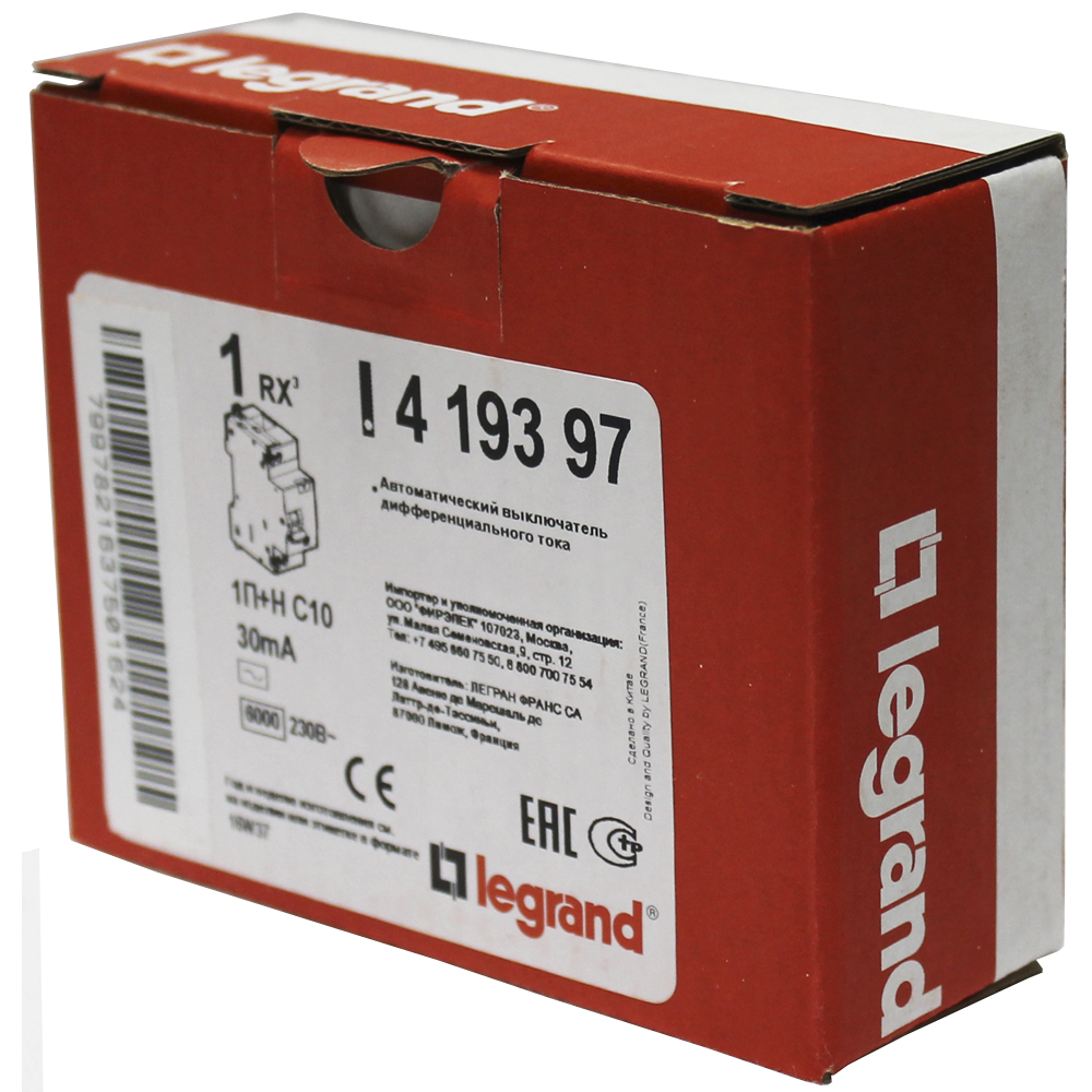 Дифавтомат Legrand серии RX3 (автоматический выключатель дифференциального тока АВДТ 6000) 10А-30мА 230В 1P+N 6кА