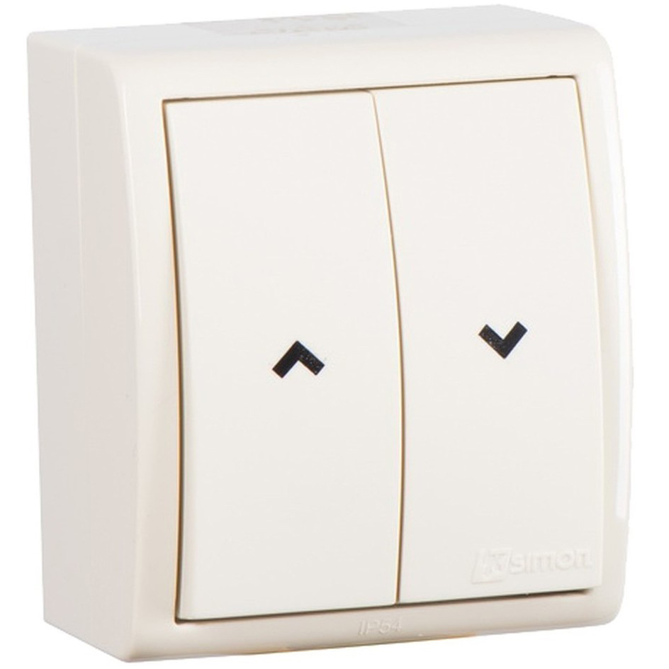 Simon15 Aqua Переключатель для жалюзи с электрической блокировкой IP54 10А 250В винтовой зажим S15A с.кость (1594332-031)