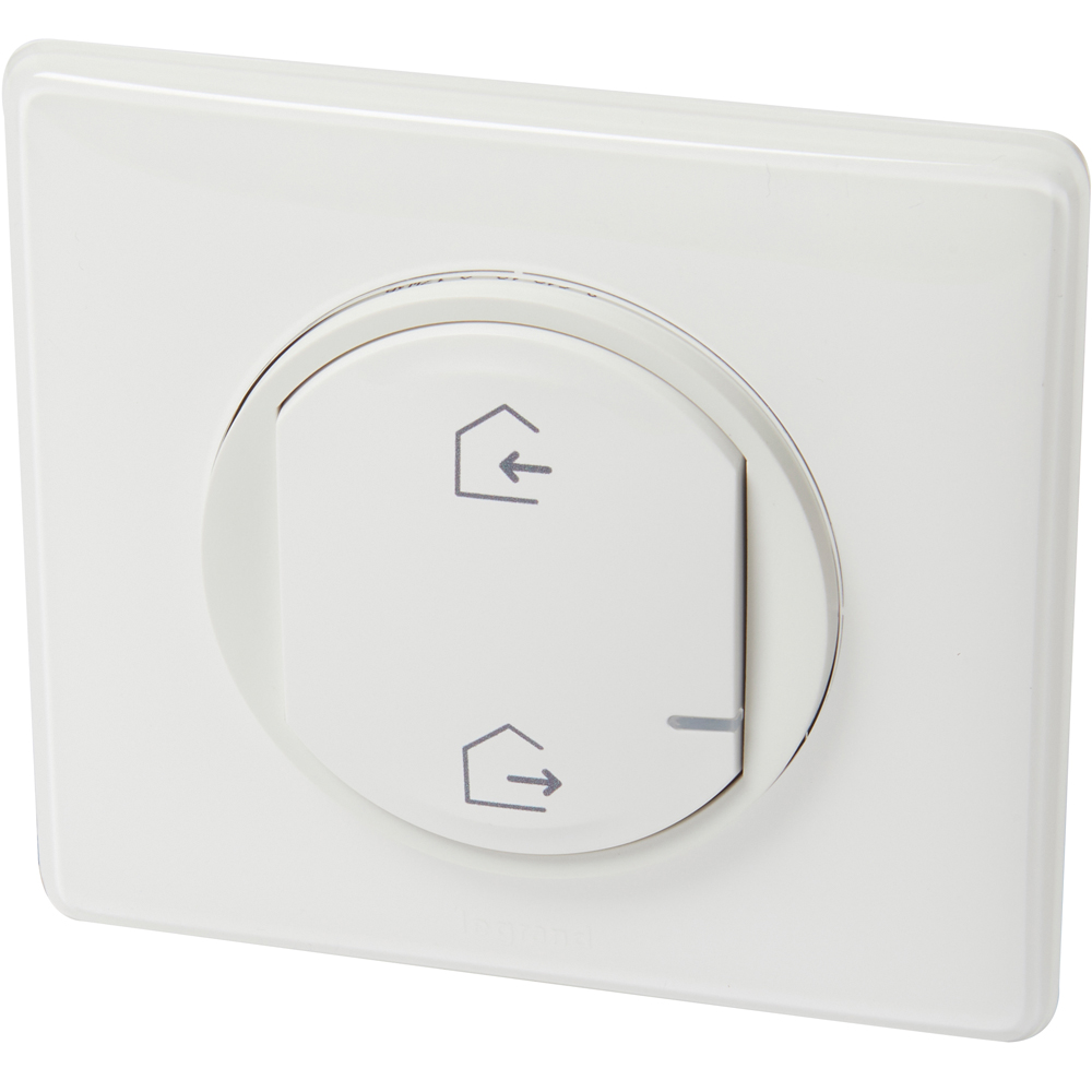Главный выключатель "Я дома/Я вне дома" позволяет управлять освещением, рольставнями и умными розетки Вашей системы домашнего комфорта Legrand.