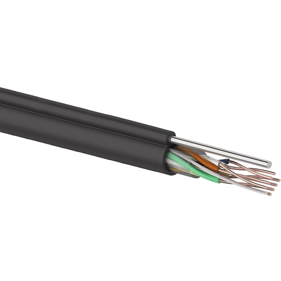 Кабель витая пара U/UTP Cat 5e 4х2х24AWG (305м) solid, PE для наружн. прокл., чёрный, трос 1,2мм TDM