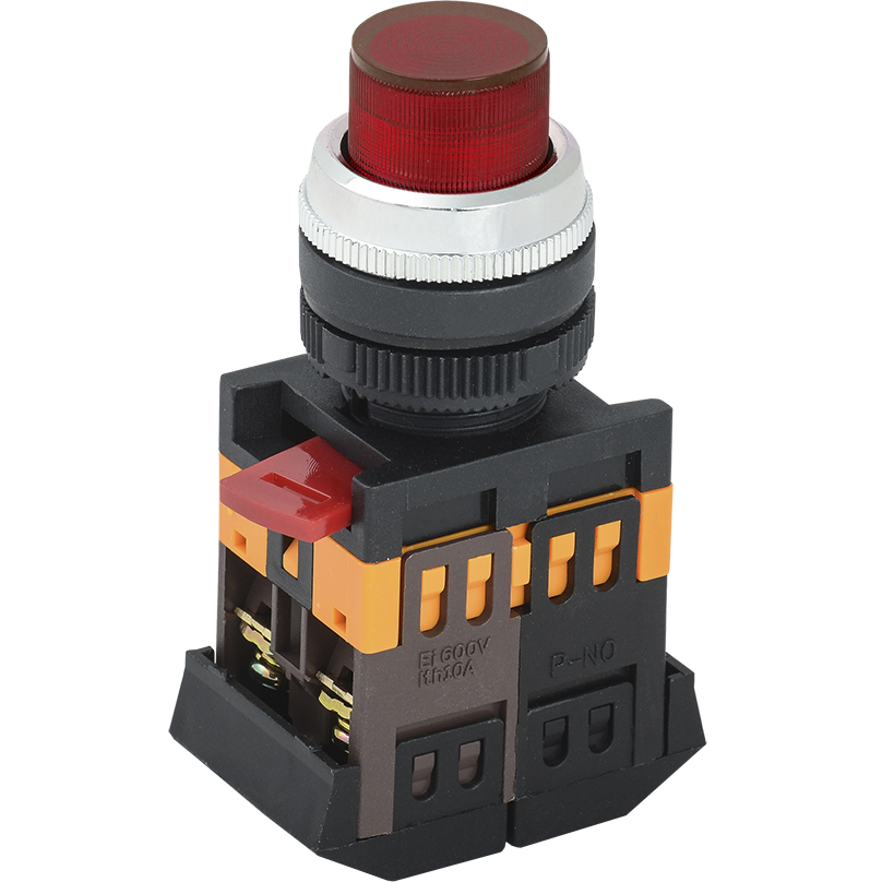 Кнопка красная ABLFP-22 красный d22мм неон/240В 1з+1р с подсветкой