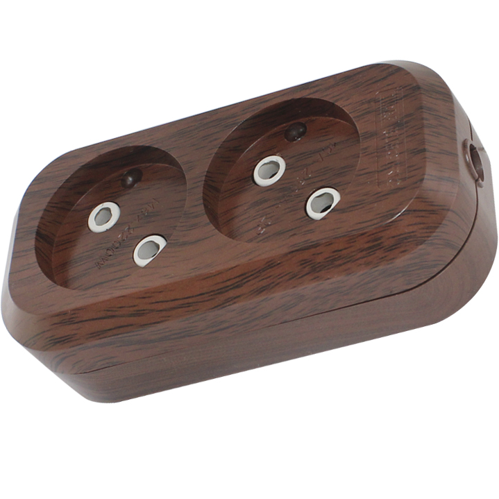 Колодка розеточная 2 гнезда 2П б/з 10А 250В "Эко" (бук) под тёмное дерево без заземления