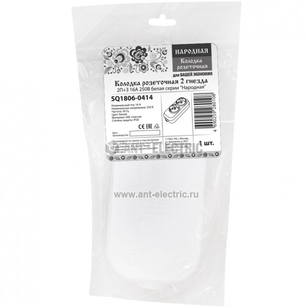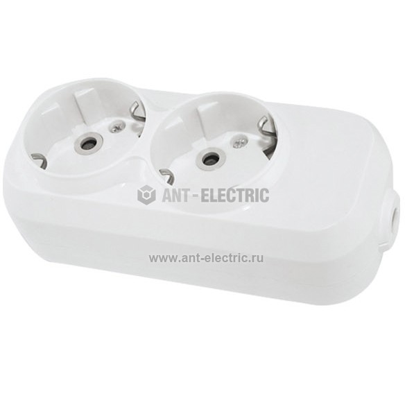 Колодка розеточная 2 гнезда 2П+З 16А 250В белая серии "Народная" (кратно 10 шт)