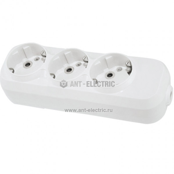 Колодка розеточная на 3 гнезда 2П+З 16А 250В белая серии "Народная" для удлинителя с заземлением K03 3 места 2P+PE 16A тройная