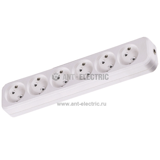 Колодка розеточная 6 гнезд 2П б/з 10А 250В белая (упак. 14 шт)