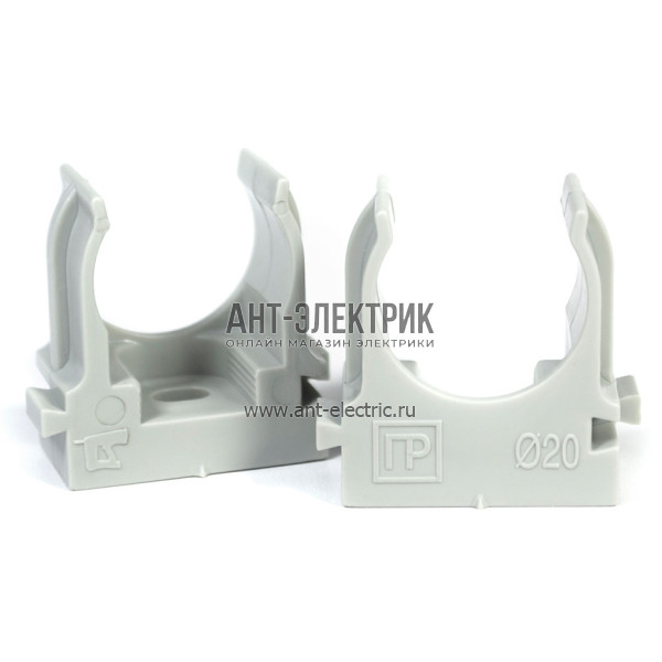 Крепеж-клипса для труб для прямого монтажа серая в гофроящике d20 мм (кратно 1200шт)