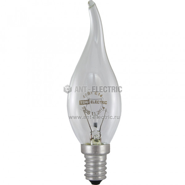 Лампа накаливания "Свеча на ветру" прозрачная 40 Вт-230 В-Е14 TDM