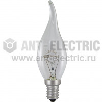 Лампа 40 Вт-230 В-Е14 накаливания "Свеча на ветру" прозрачная Артикул: