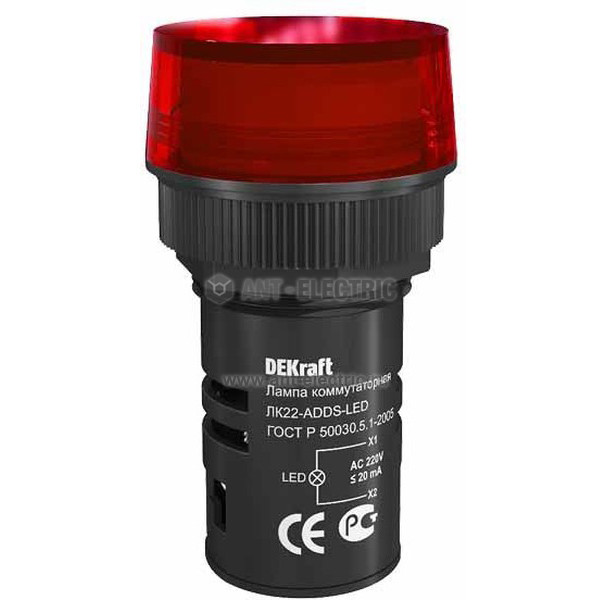 Лампа LED коммутаторная ADDS D=22мм 220В AC ЛK-22 (Красная)