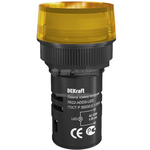 Лампа LED коммутаторная ADDS D=22мм 220В AC ЛK-22 (Желтая)