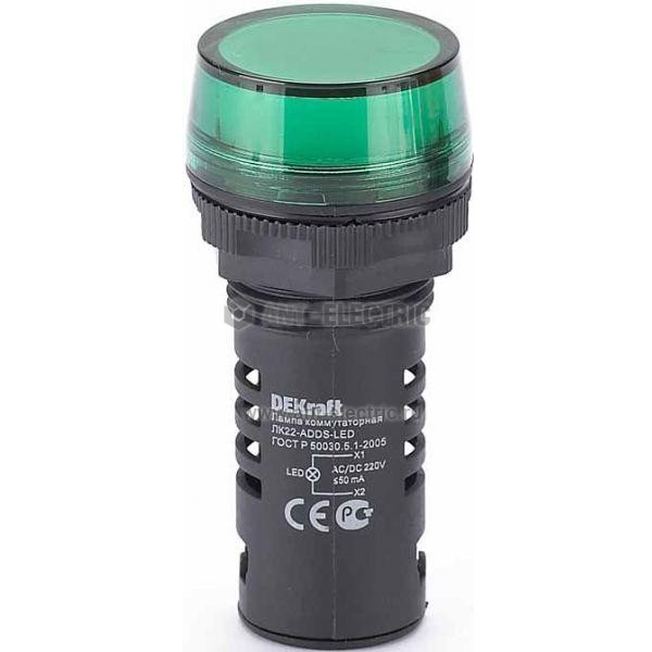 Лампа коммутационная ЛК-22 ADDS диам. 22мм LED зеленая 220В AC/DC