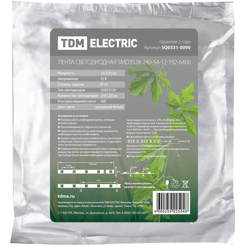• Световой поток каждого светодиодного чипа >5 лм (для чипов 3528).