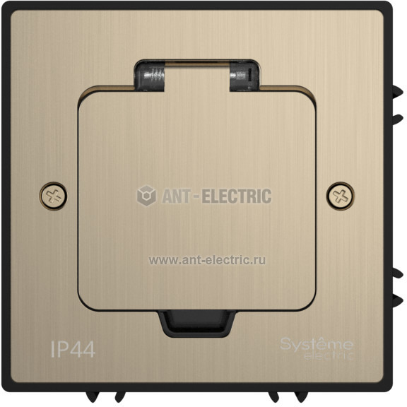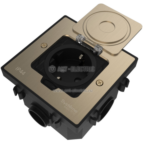 Лючок MultiDeS с розеткой 2К+З 16А/250В IP44 с монтажной коробкой для бетонных полов Никель тип MDK21