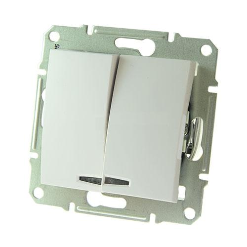 Sedna Выключатель двухклавишный с подсветкой в рамку белый сх.5